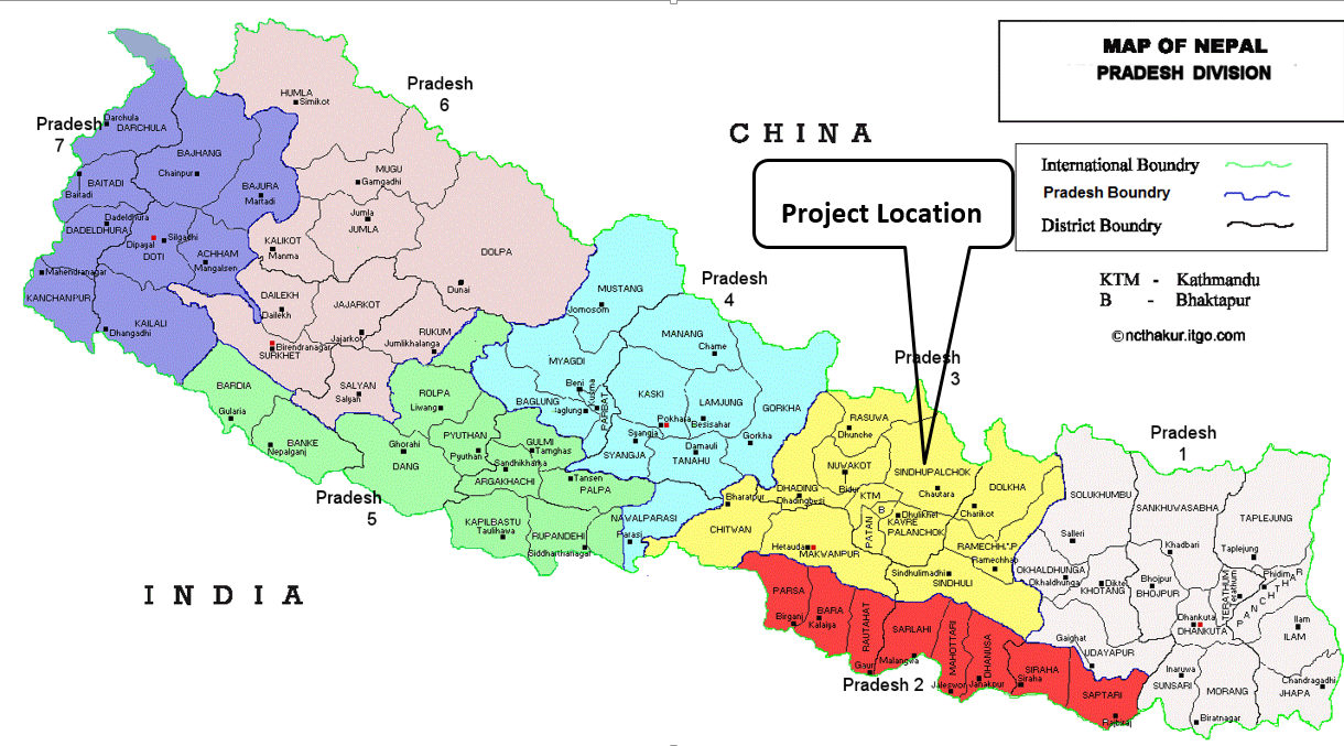 Kathmandu to Melamchi -43.7km via Sankhu,53.3km via Banepa Melamchi to Headworks -4km via Melamchi-Bhotang Road |